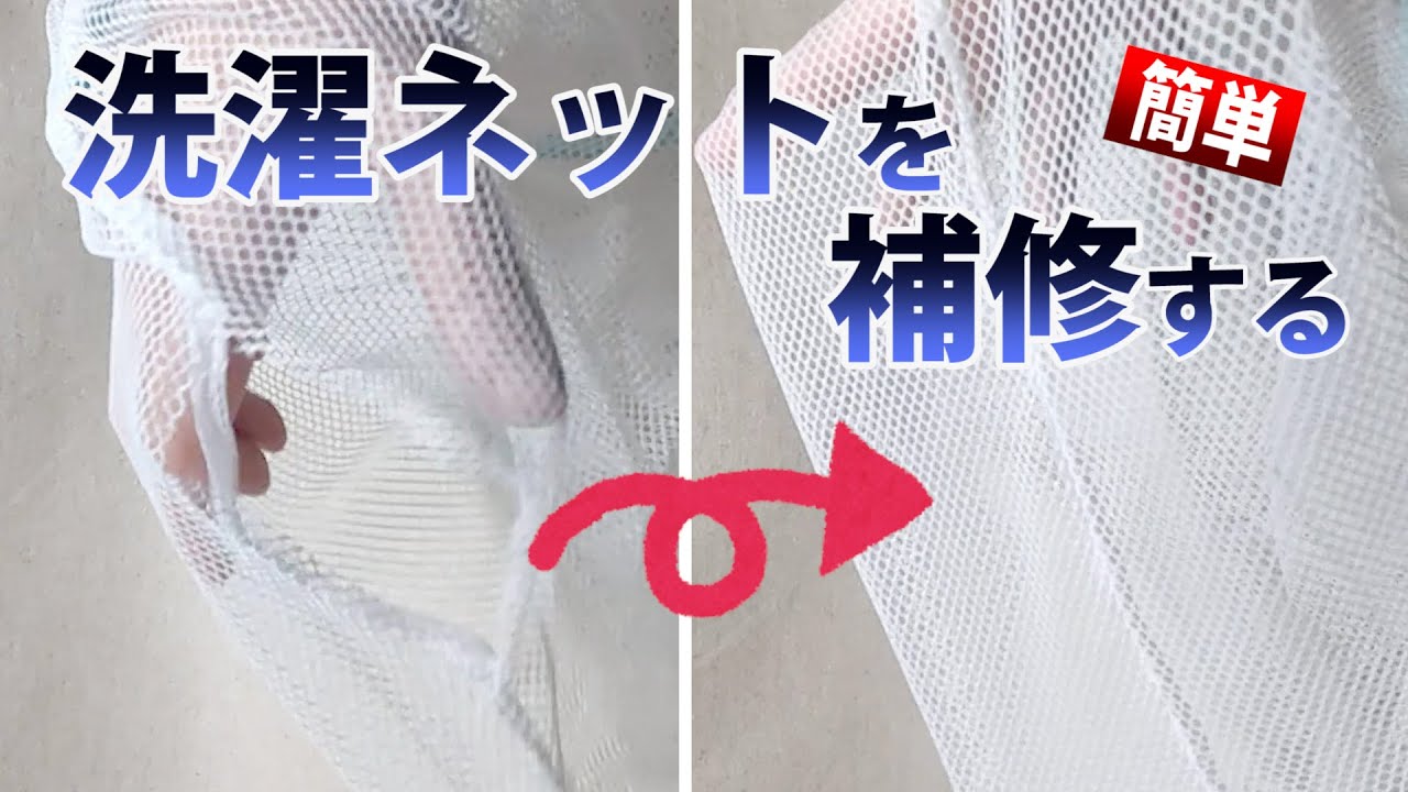 The sides of a laundry net I bought at a 100-yen shop came undone, and the laundry was spilling out, so I did a quick repair.