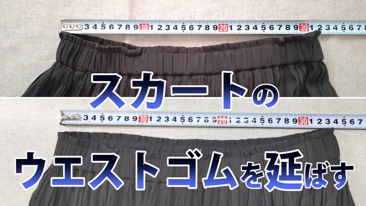 ウエストゴムのスカートですが、もう少しウエストに余裕が欲しかったので、ゴムを追加して延ばしました。